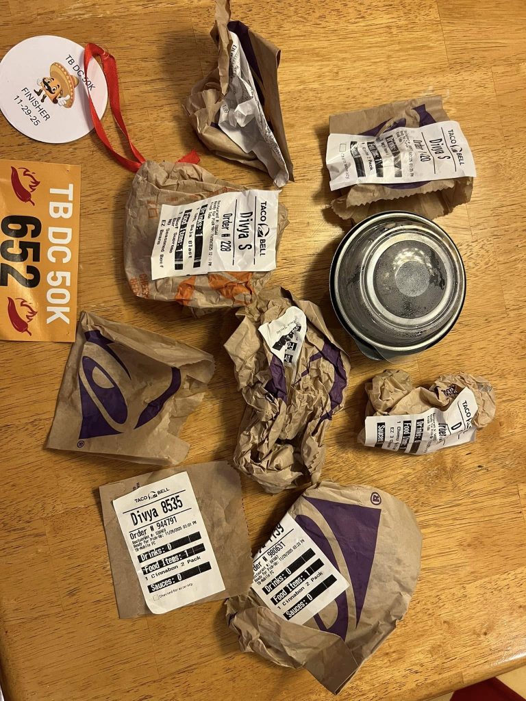 We hear from Divya who ran the Taco Bell 50tk. Runners cover 31 miles, stopping at nine Taco Bell locations to eat a menu item at each. With an 11-hour limit,